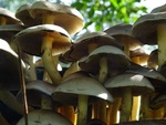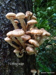 Rhizomorfen, (hyfen (zwamdraden) van de Honingzwam).
