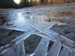 IJskristallen op de weg.