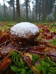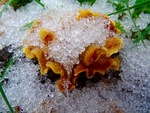 Spekzwoerdzwam bedekt met sneeuw.
