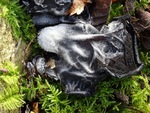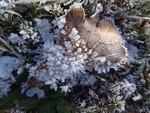 Eikentrilzwam bedekt met een laag ijs.