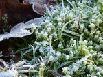 Mos bedekt met ijs.