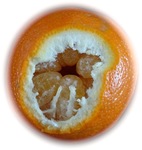 Het is niet wat het lijkt. In eerste instantie zou je denken aan een rups. Maar het is een gedeelte van een uitgebloeide paardebloem.