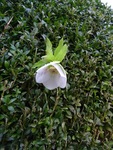 Eenzame Helleborusbloemetje steekt nieuwsgierig haar kopje naar buiten.