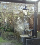 Eigenlijk... geen grapje... duif botst tegen de ramen. Zie de afdruk. Hij vloog wel weg!