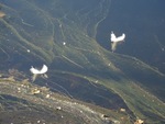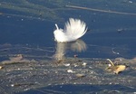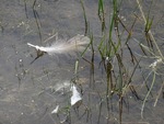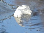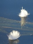 Twee veertjes op het water.