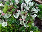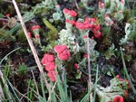 Veel te zien op deze foto: Rendiermos (Open rendiermos, cladonia portetosa, korstmos), Haarmos en Klauwtjesmos en Heide. (de Moer 3-3-2016).