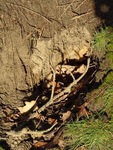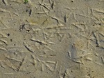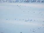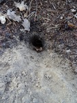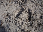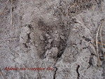 Pootafdruk van konijn bij een holletje van een muis.