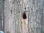 Klein hol beetje verstopt achter takken.