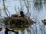 Verlaten nest van de Fuut met een zoetwatermossel.