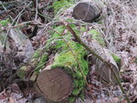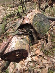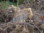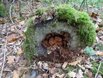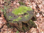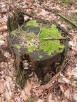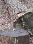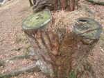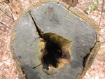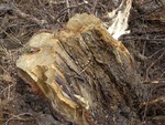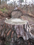 Eenzaam op een afgezaagde boom.