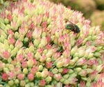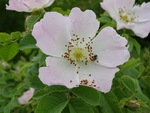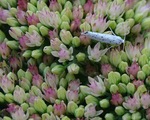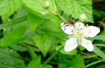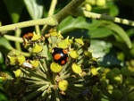 Div. insecten op Hereda Hedix. Vlieg met snaveltje is de Empis spec. (fam. van de dansvlieg). Linksonder Werkvliegje (met zwarte stip in de vleugels), nog meer naar links is het Bronswespje.