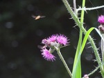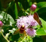 Blinde Bij op Phiox Paniculata. (blinde bij is ned. naam van de Zweefvlieg Eristallig tenax. Blind, omdat deze niet kan steken.