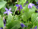 Campanula poscharskyana (kruipklokje) en Honingbij.