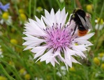 Steenhommel op Korenbloemaster.