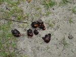 Uitwerpsel van vogel die bessen heeft gegeten.