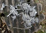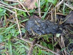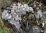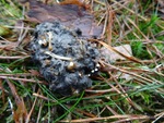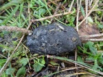 Uilenbal met daarop groeiend kleine mestzwammetjes.