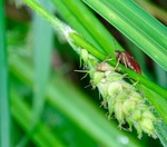 Nimf v.d. zuidelijke grone schildwants. Nevara Viridula.